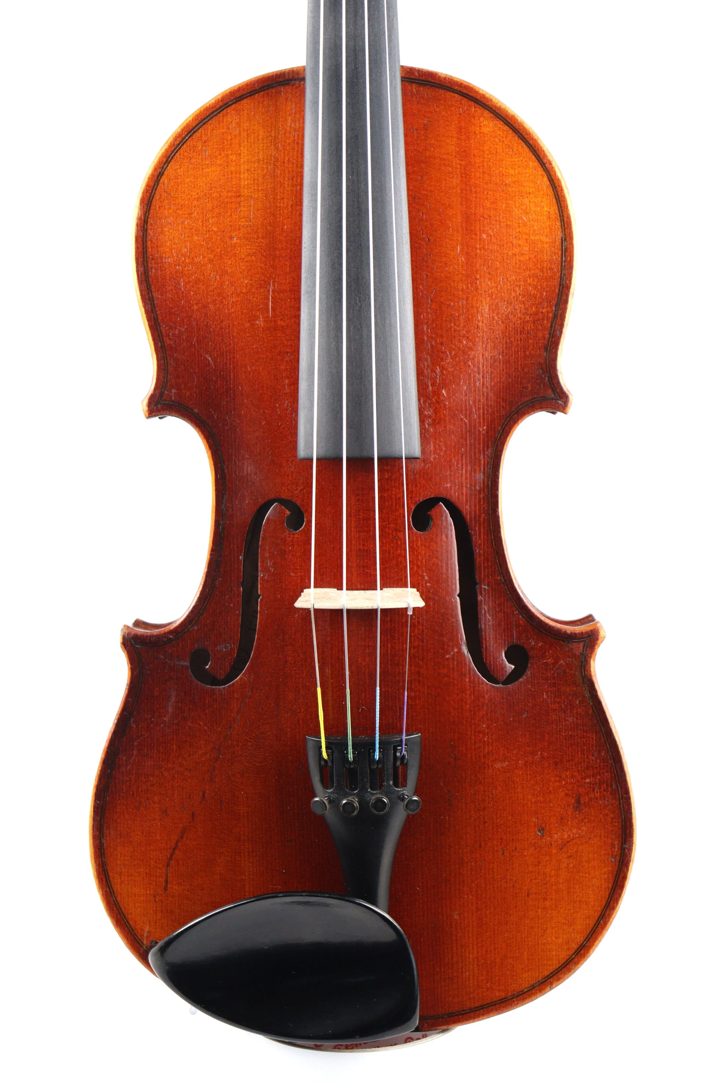 In very good structural condition, recently set up in the workshop with new Aubert adjustable quality bridge, new soundpost, Solid Rosewood pegs, new Wittner tailpiece with fine adjusters, antique Ebony chin rest, new Pirastro Tonica string set.