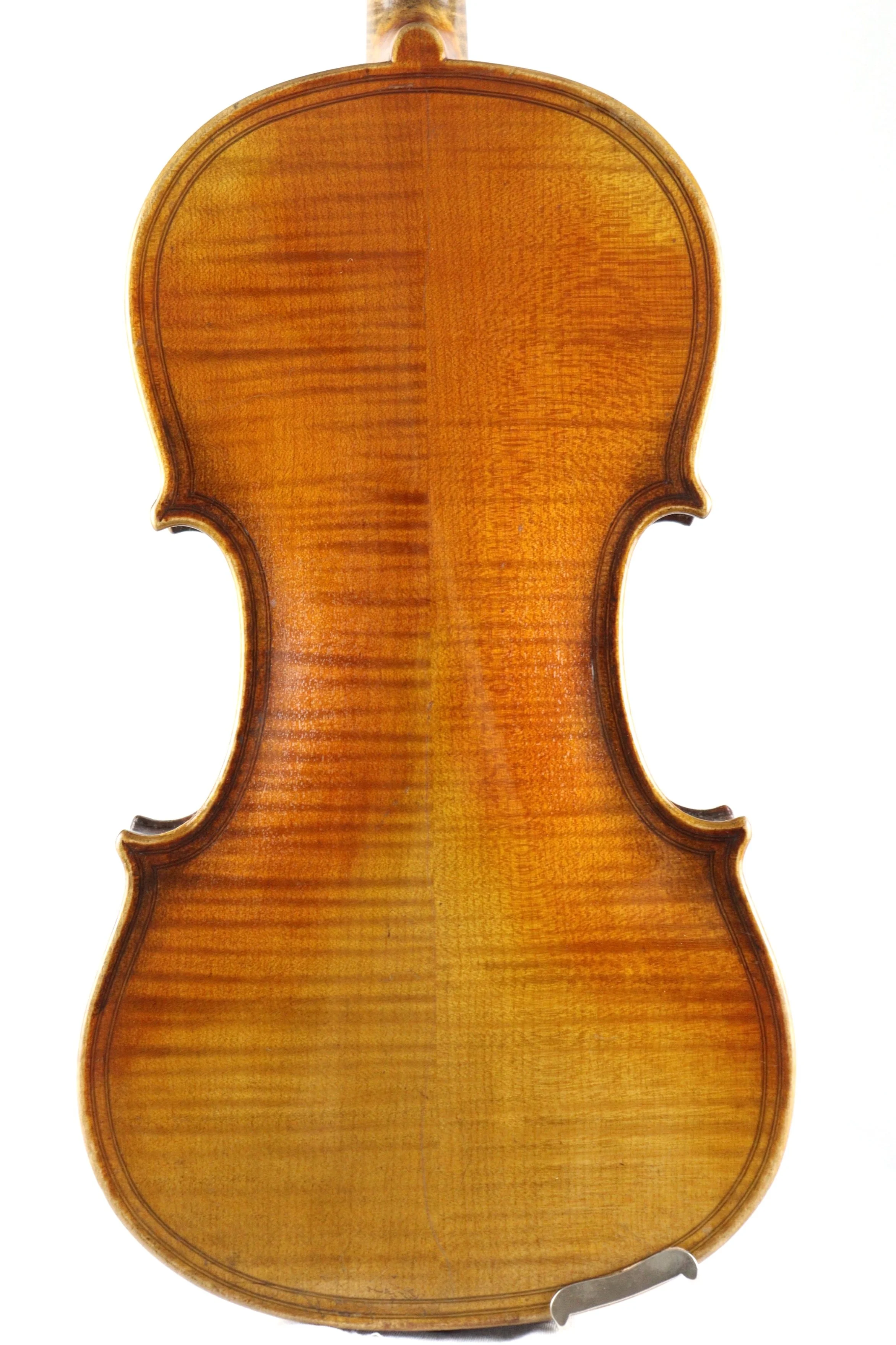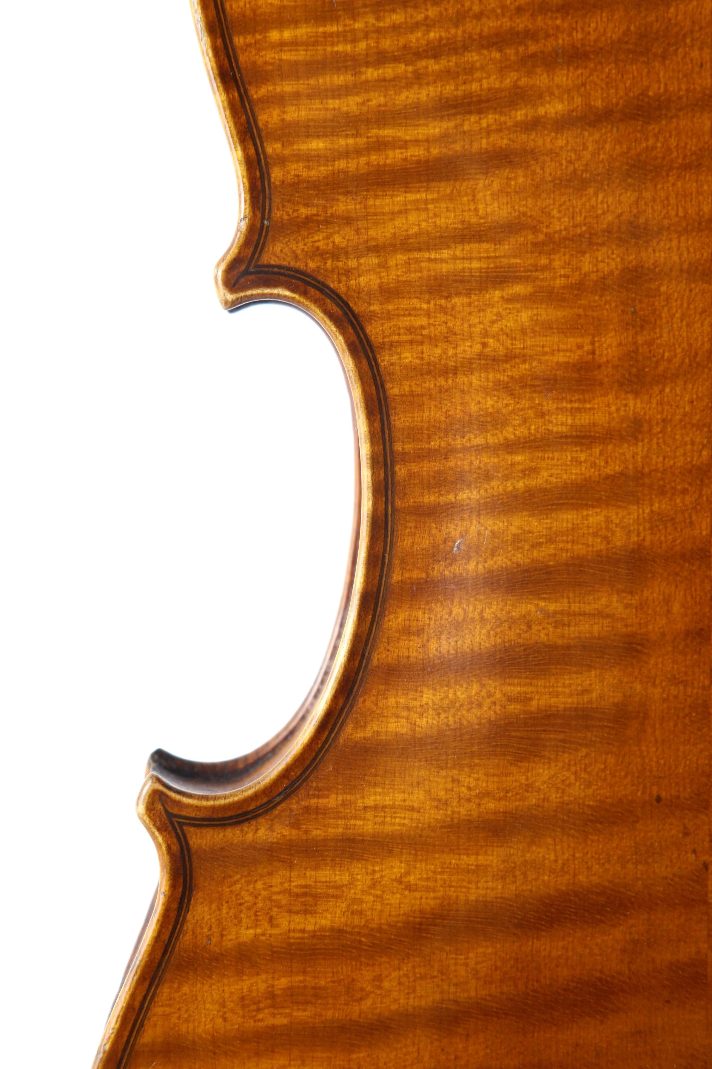 In perfect structural condition, recently set up in the workshop with Aubert bridge, new soundpost, solid Ebony pegs, Wittner tailpiece with fine adjusters, antique Ebony chin rest, D’addario Pro-Arte string set.