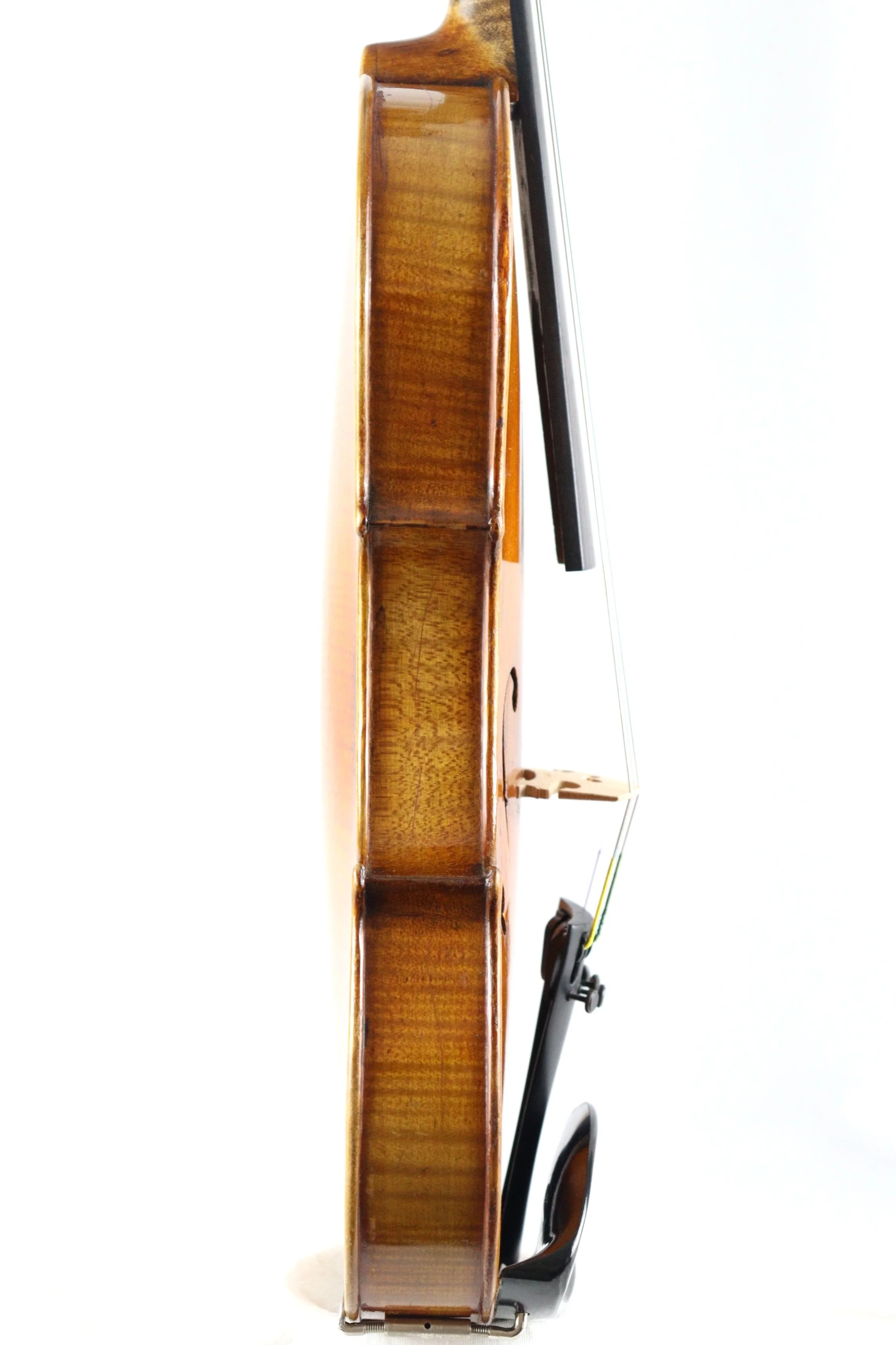 Recently put back to ideal playable condition, fine Ebony English style tuning pegs, Wittner tailpiece with four embedded adjusters, comfortable Berber style Ebony chin rest, fitted with new Thomastik-Einfield Dominant string set, new Aubert fine bridge, newly fitted soundpost.